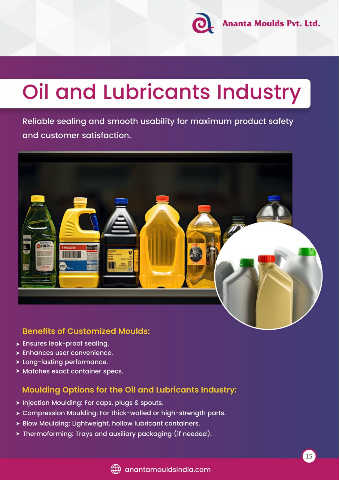 Blow Moulding: Lightweight, hollow lubricant containers.